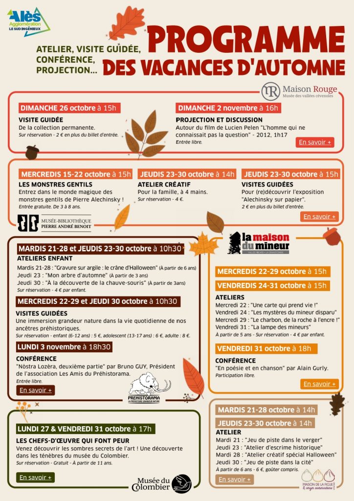 Programme vacances de Toussaint 2025 des sites touristiques et musées d’Alès Agglomération 14 octobre 2025Actualités Pour en savoir plus : A3 vacs automne web Facebook Twitter Pinterest LinkedIn Publication précédente Compte rendu - Conseil municipal du 19-09-2025 Publication suivante RANDONNÉE EN ÂNE PROPOSÉE PAR MARC MAURIN - JEUDI 23 OCTOBRE 2025 - 9H00 - DEVANT LA MAIRIE DE STE CÉCILE