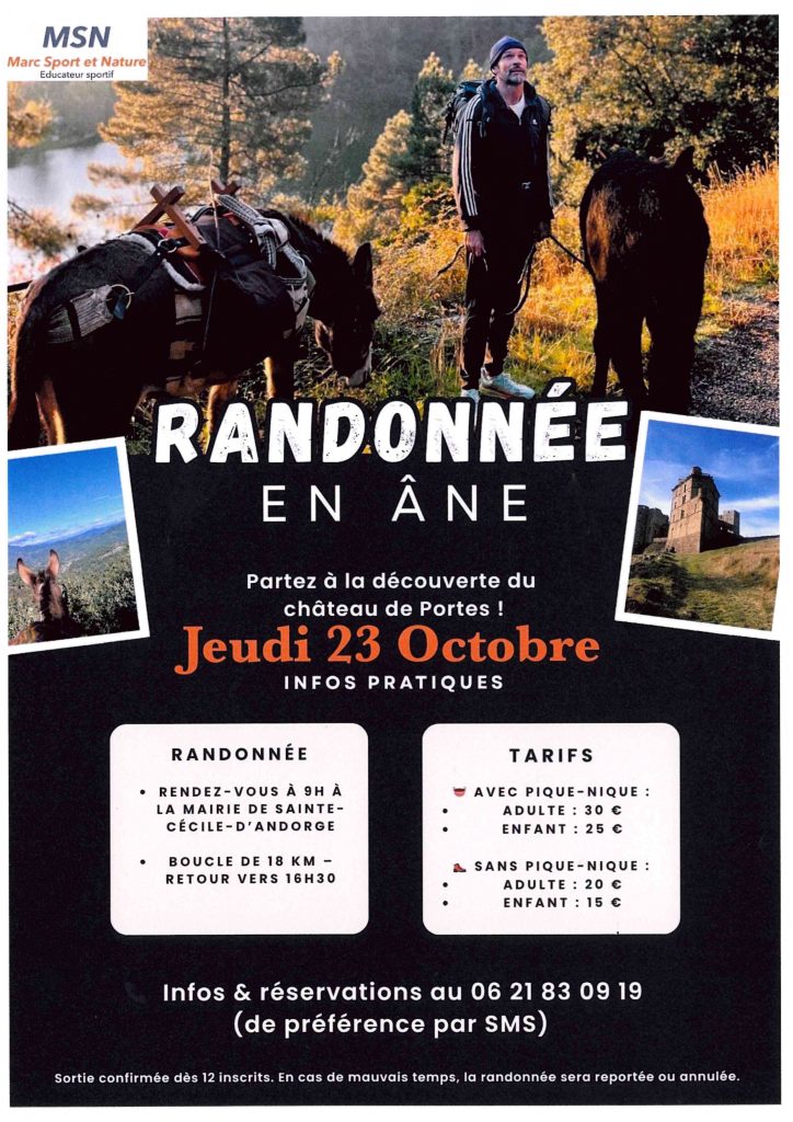 RANDONNÉE EN ÂNE PROPOSÉE PAR MARC MAURIN – JEUDI 23 OCTOBRE 2025 – 9H00 – DEVANT LA MAIRIE DE STE CÉCILE 14 octobre 2025Actualités Facebook Twitter Pinterest LinkedIn Publication précédente Programme vacances de Toussaint 2025 des sites touristiques et musées d'Alès Agglomération